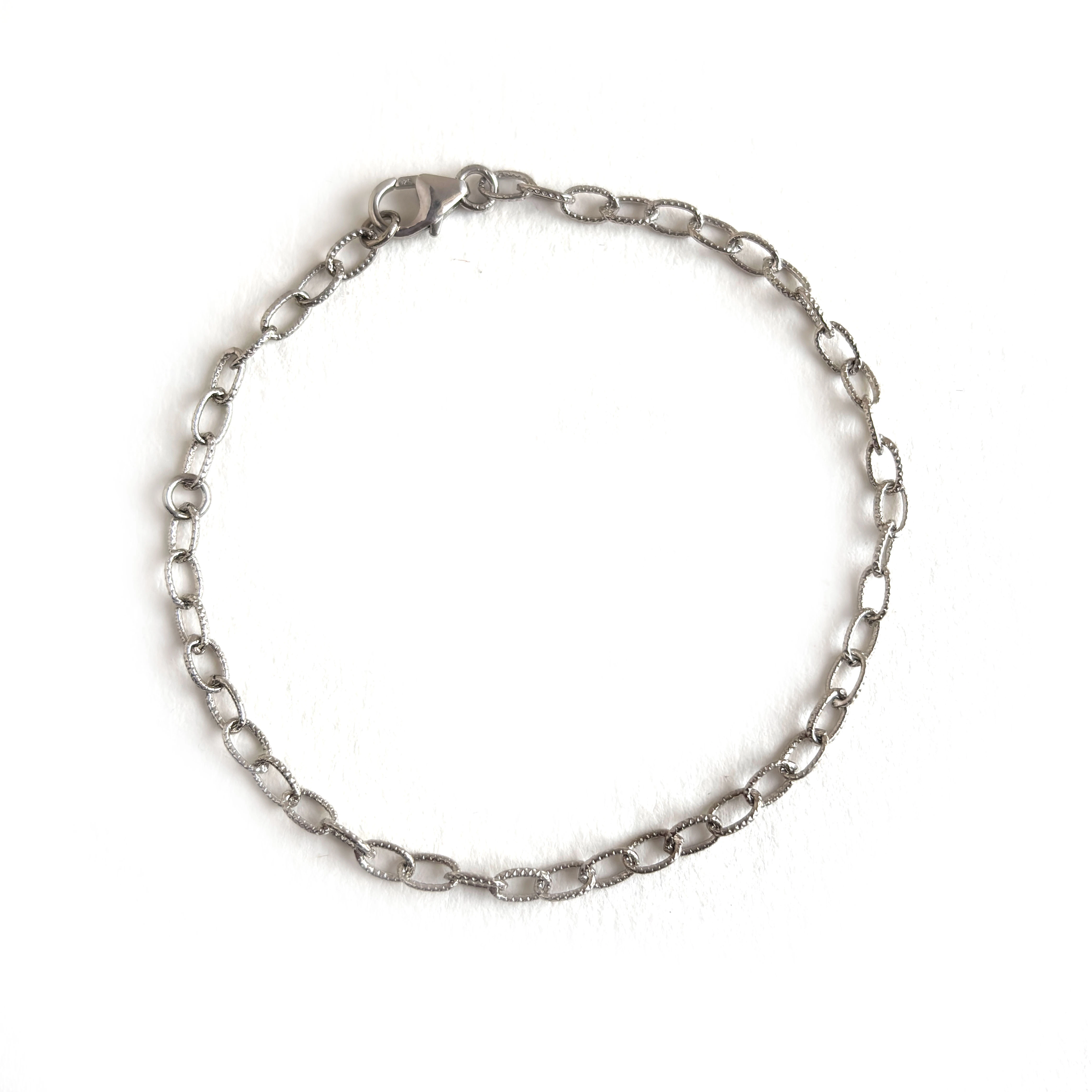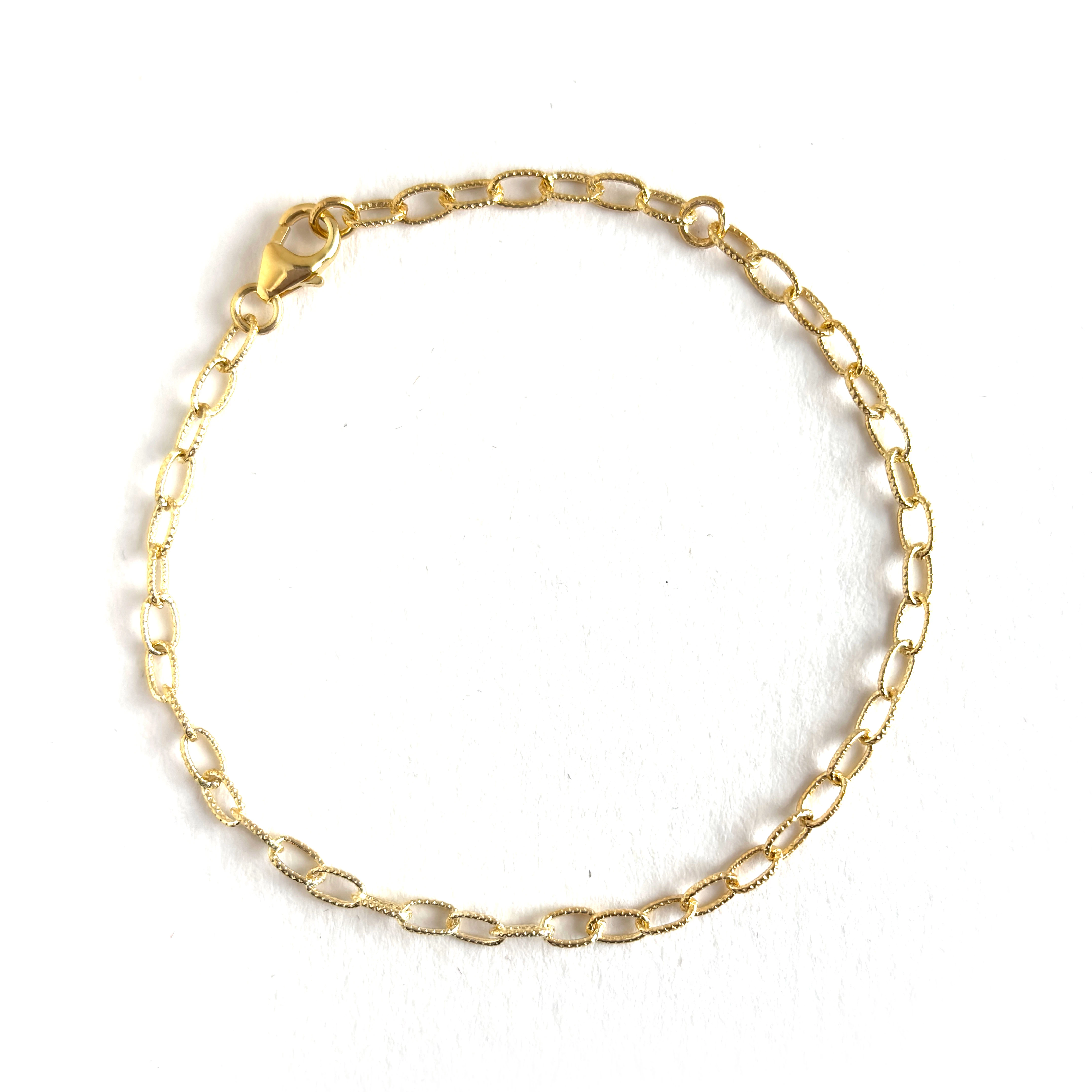 "Classic interlocking links with a polished finish—timeless shine in a sleek cable bracelet."