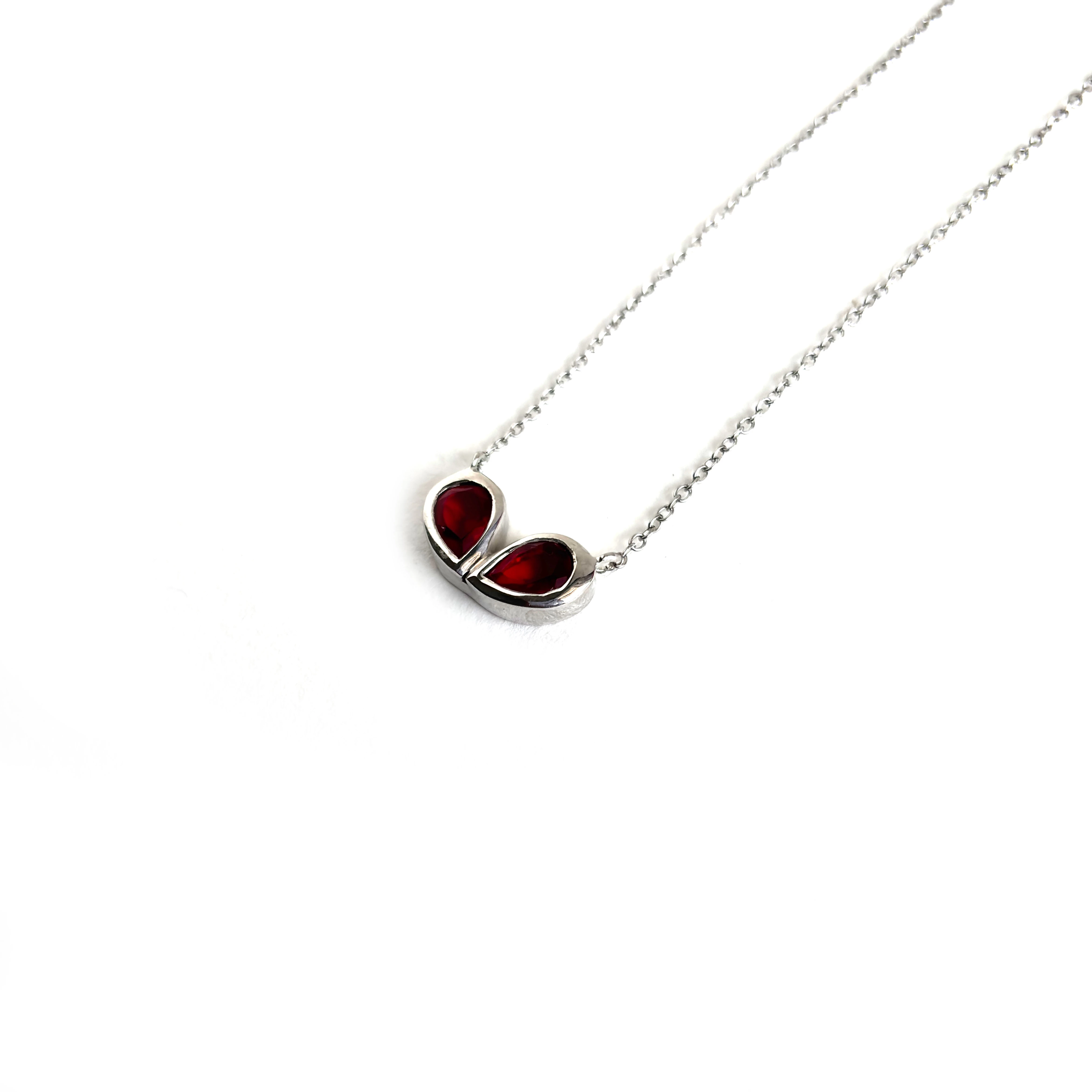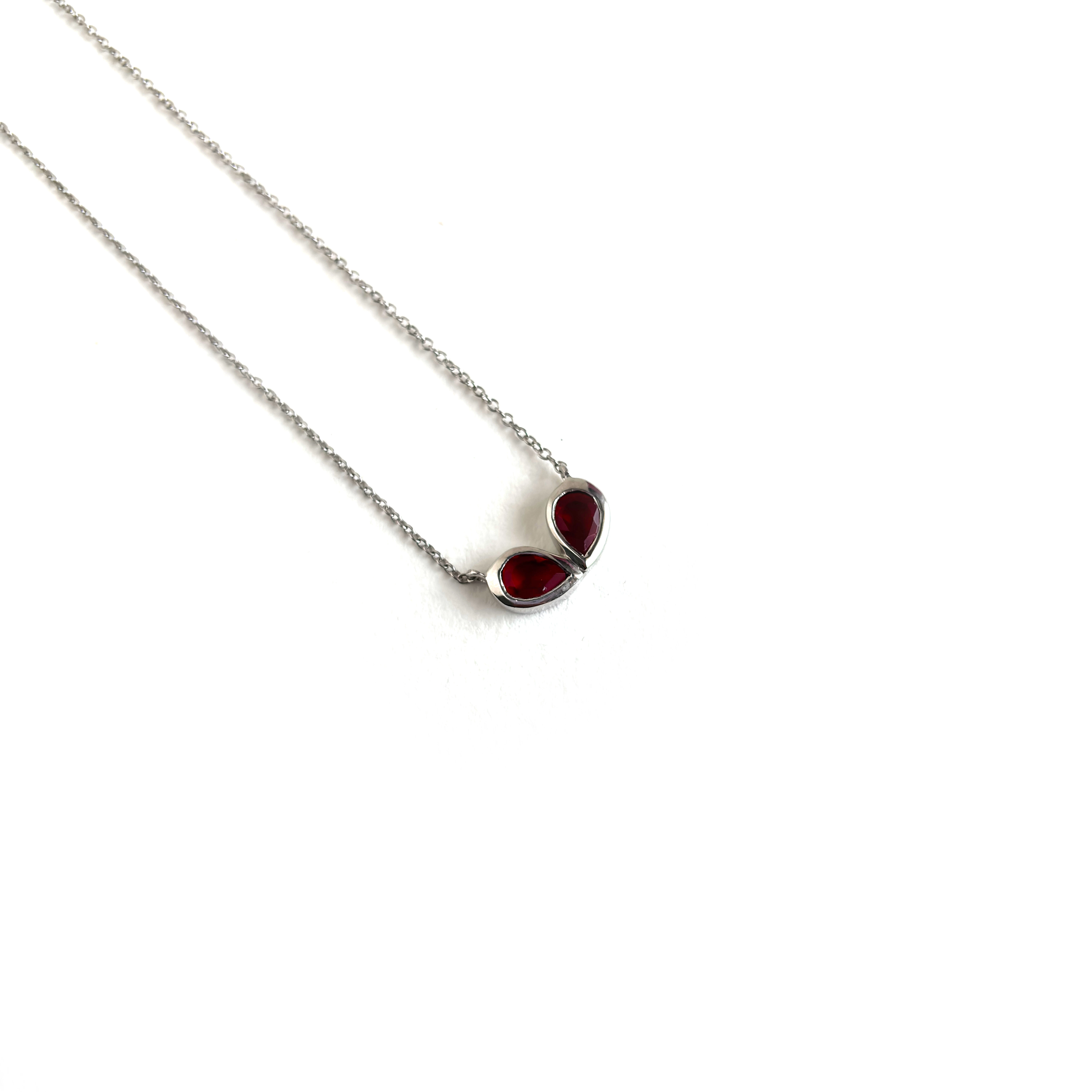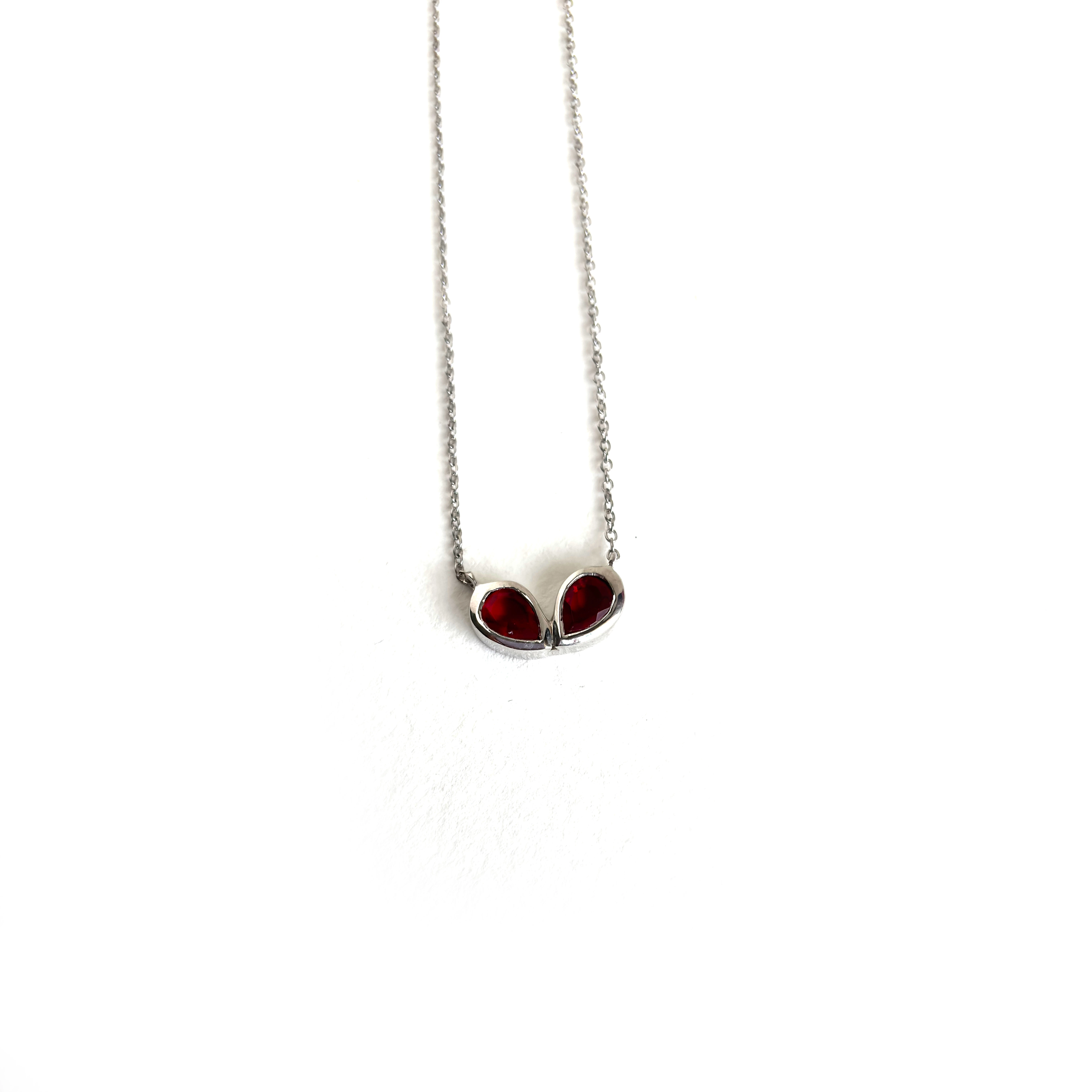 A symbol of love and strength, this red pear-shaped necklace celebrates the fiery spirit of every woman.